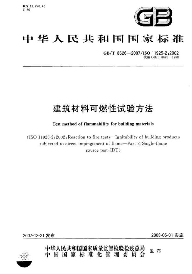 GBT_8626-2007建筑材料可燃性試驗(yàn)方法